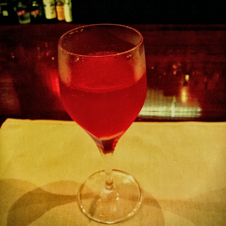 (写真は古町のbar「町田」でいただいたカクテル「ガーネット」. ウォッカ, ジン, コアントロー, カシス, レモン)